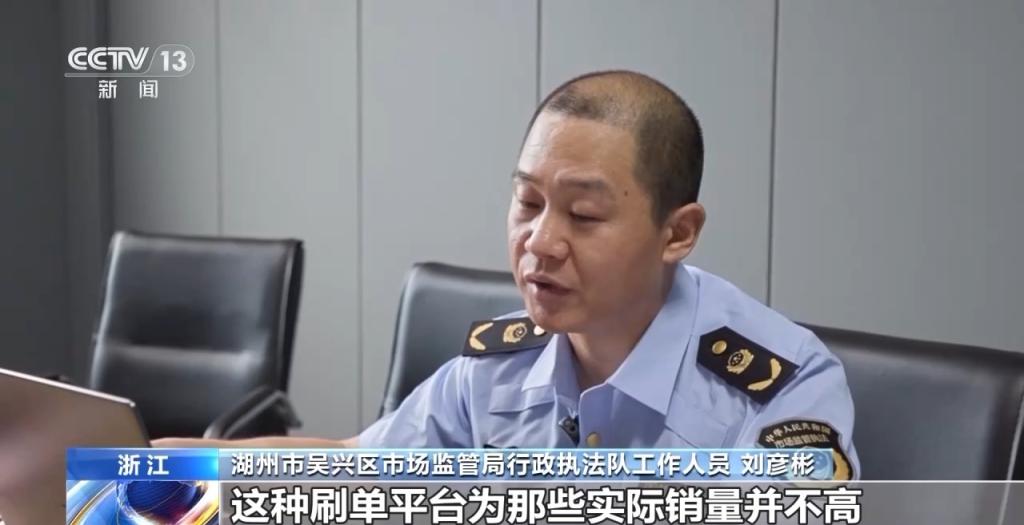 湖州市吴兴区市场监管局行政执法队工作人员 刘彦彬:这种刷单平台为那些实际销量并不高,但是想取得虚假高销量的网店提供这种服务,实际上销量有可能就是通过刷单平台刷出来的。我们主要是对公司的刷单行为进行了处罚,依据《中华人民共和国反不正当竞争法》,对经营主体罚款39万元。